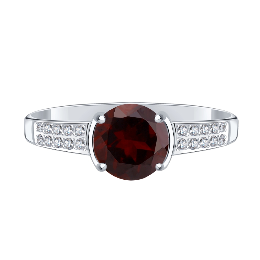 КОЛЬЦО С ГРАНАТОМ И ФИАНИТАМИ