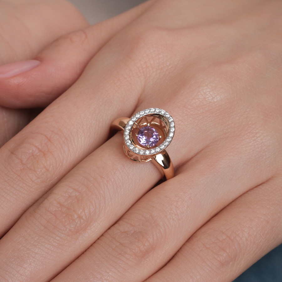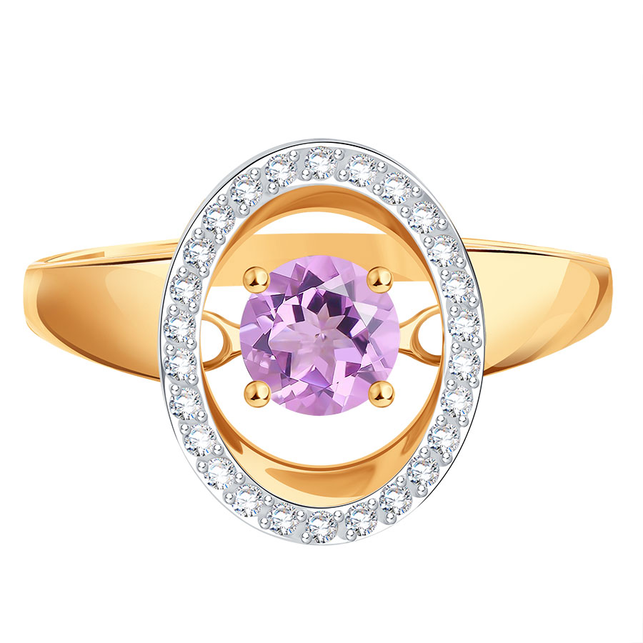 КОЛЬЦО С АМЕТИСТОМ И ФИАНИТАМИ
