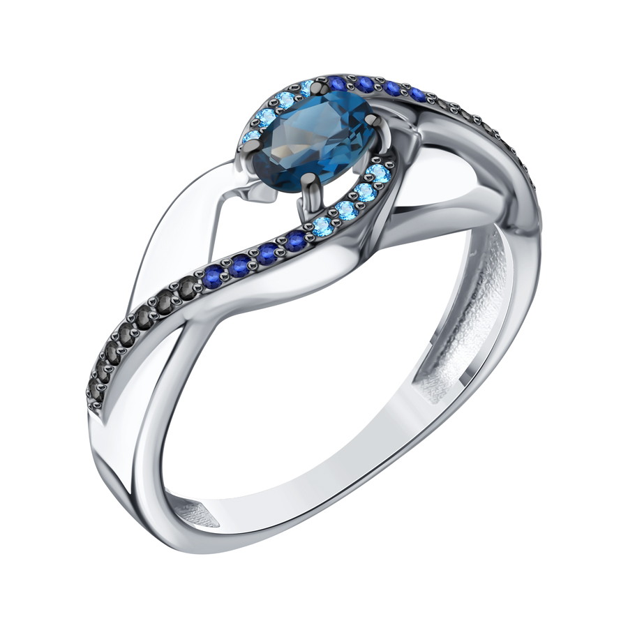 Вставка1 топаз 0,52ct 6,0*4,0 Овал Лондон; 8 фианит 1,0 Круг голубой; 8 фианит 1,0 Круг синий; 14 фианит 1,0 Круг черный