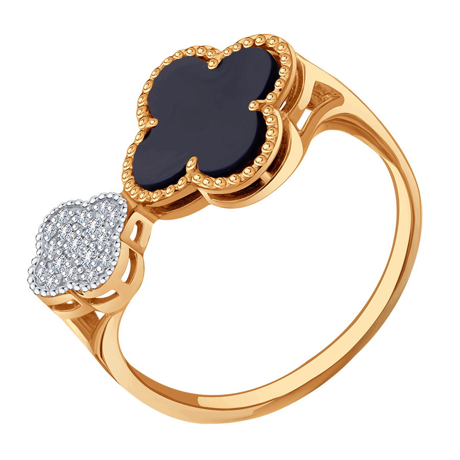 Кольцо с бриллиантами и ониксом (арт. Т14101Д588)
