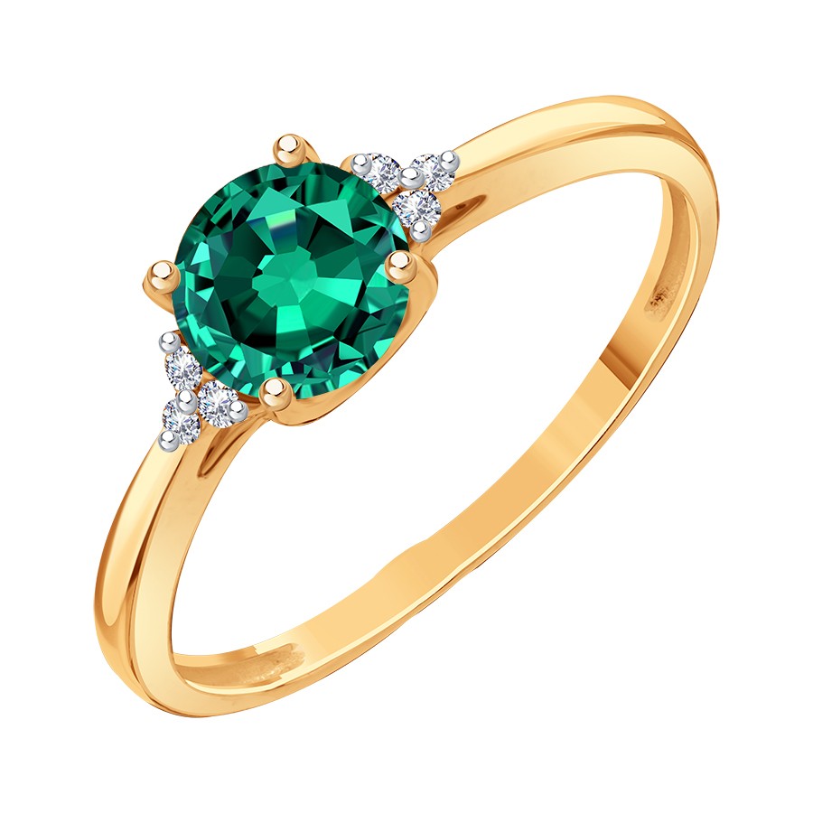 Кольцо с бриллиантами и изумрудом гидротермальным