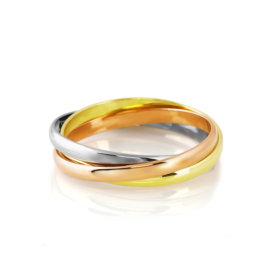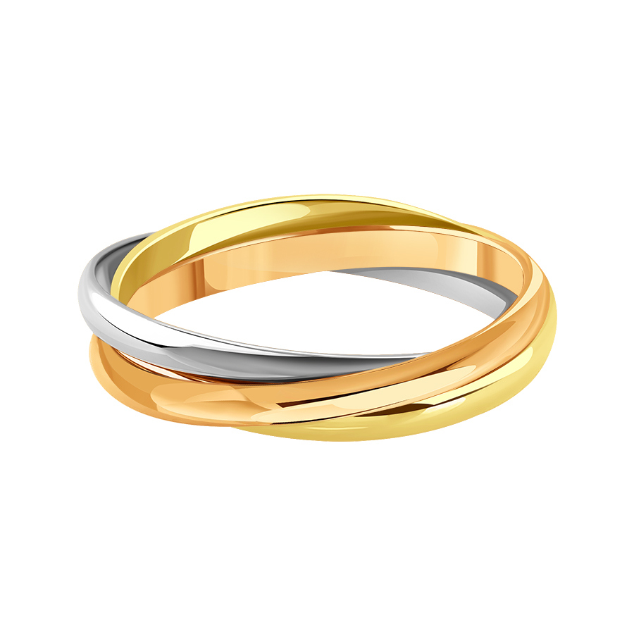 Очень красивое кольцо в европейском стиле, а-ля легендарное классическое кольцо Trinity от Сartier. Три гладких кольца из красного, белого и желтого золота надежно переплетены между собой и красиво укладываются на пальце. Пришло в срок, ношу с удовольствием! Также порадовала выгодная цена за грамм золота.