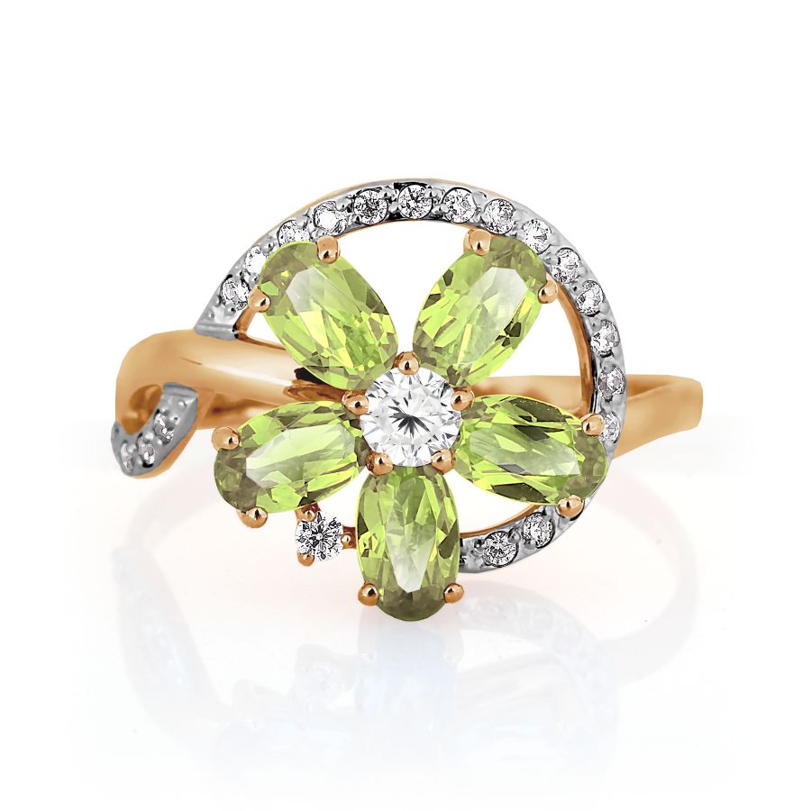 КОЛЬЦО С ХРИЗОЛИТАМИ И ФИАНИТАМИ