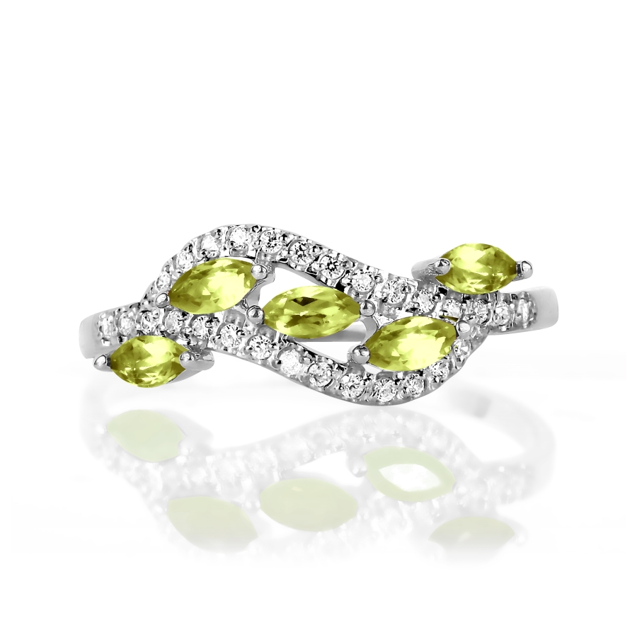 КОЛЬЦО С ХРИЗОЛИТАМИ И ФИАНИТАМИ