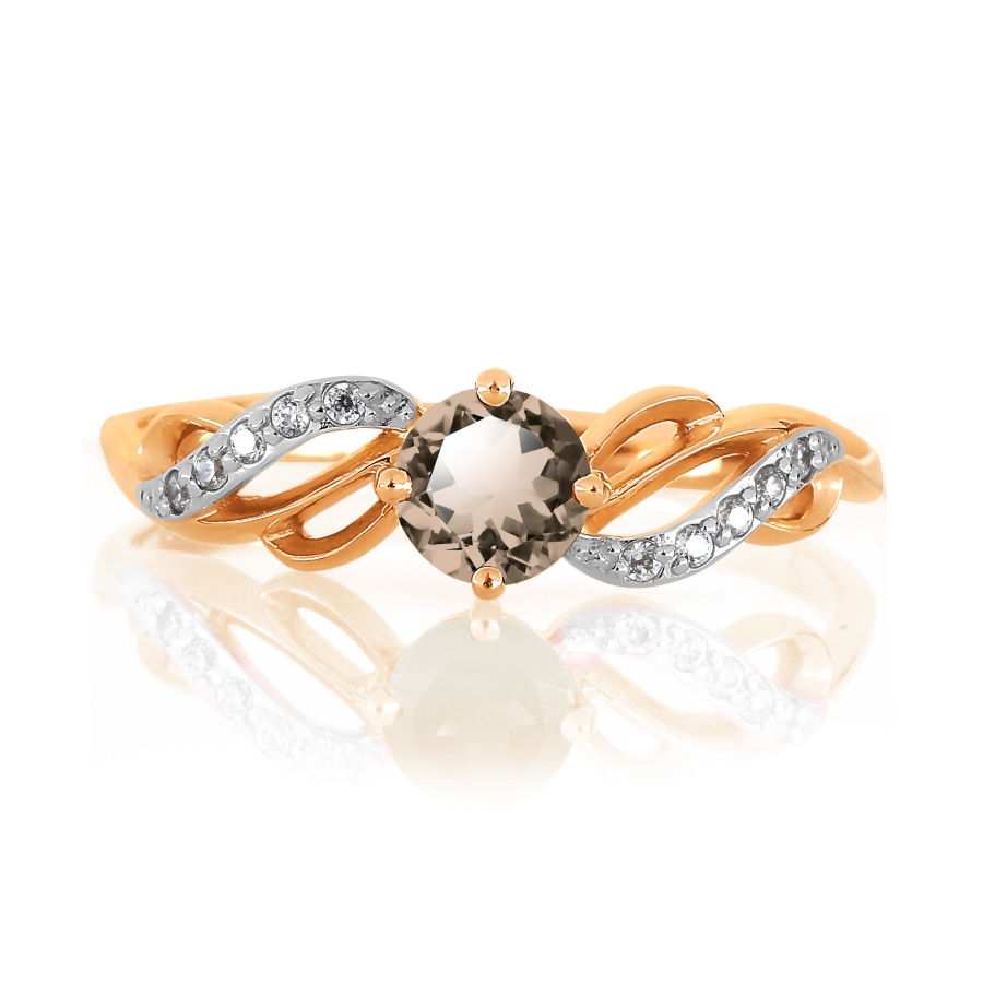 Кольцо с раухтопазом и фианитами