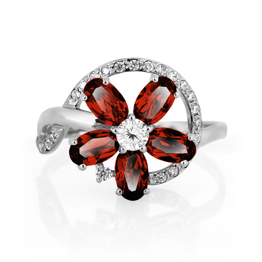 КОЛЬЦО С ГРАНАТАМИ И ФИАНИТАМИ