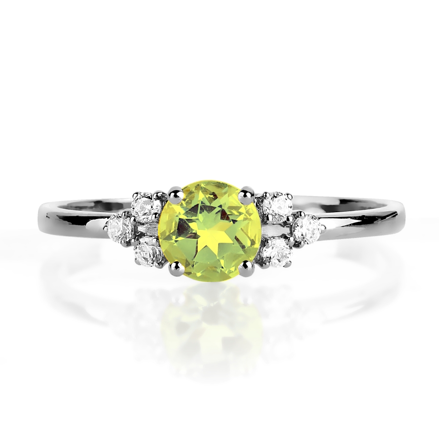 Кольцо с хризолитом и фианитами