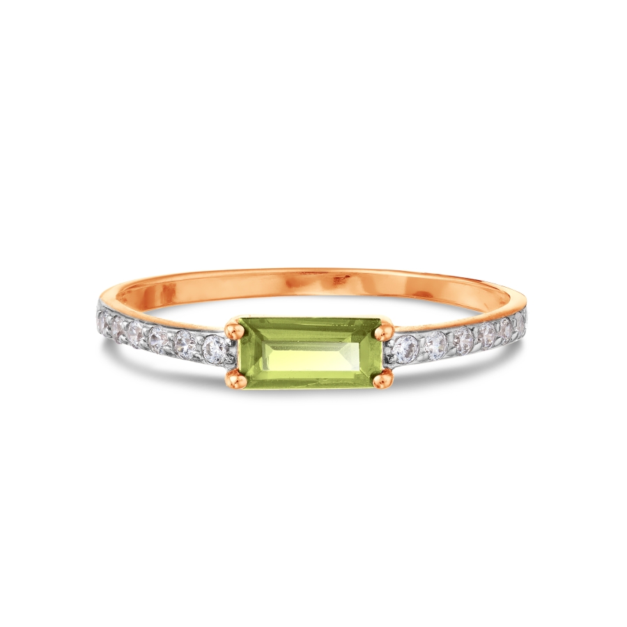 КОЛЬЦО С ХРИЗОЛИТОМ И ФИАНИТАМИ