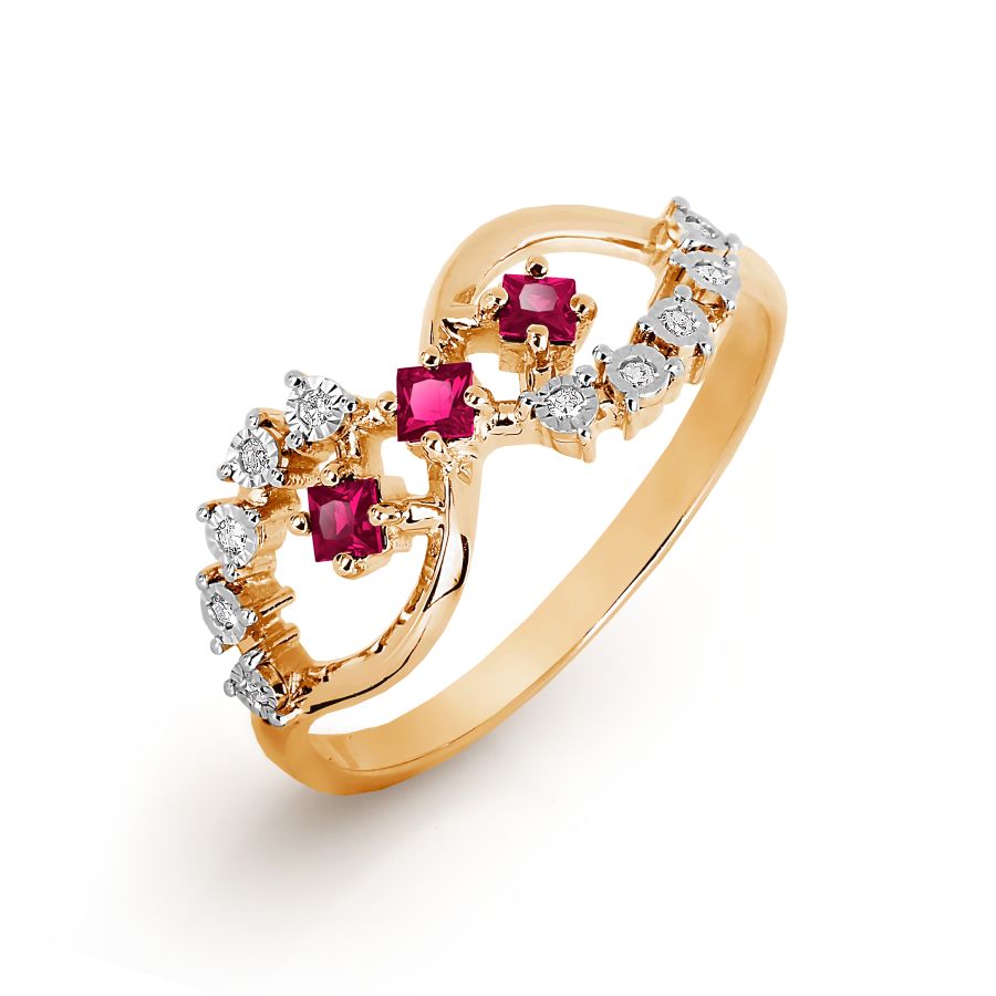 КОЛЬЦО С РУБИНАМИ И БРИЛЛИАНТАМИ