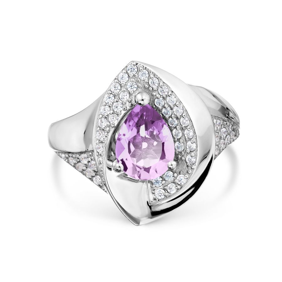 КОЛЬЦО С АМЕТИСТОМ И ФИАНИТАМИ
