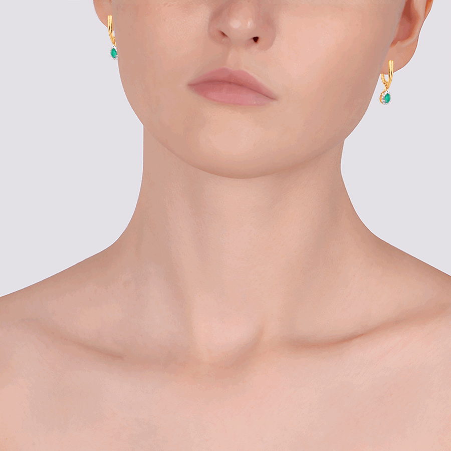 Вставка2 агат 6,0*4,0 Груша зеленый; 12 фианит 1,0 Круг