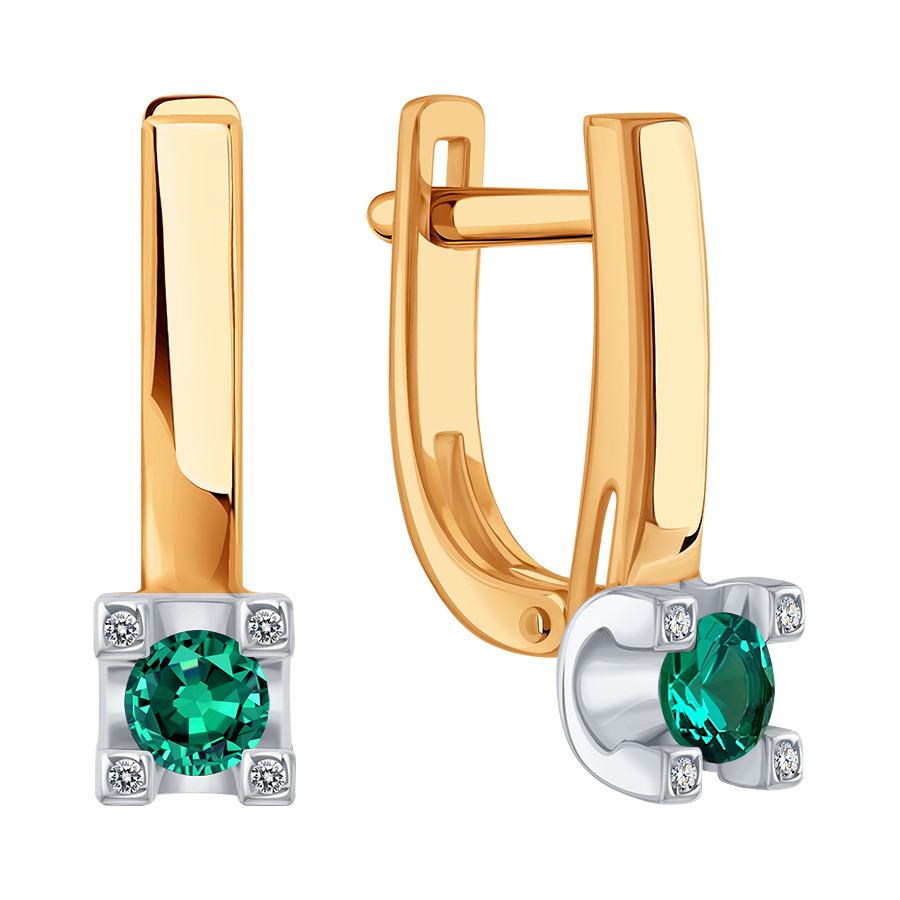 Серьги с бриллиантами и изумрудами гидротермальными (арт. Т14102Г424-02-03)