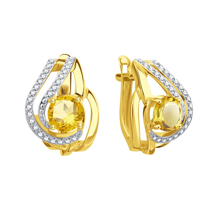 СЕРЬГИ С ЦИТРИНАМИ И ФИАНИТАМИ
