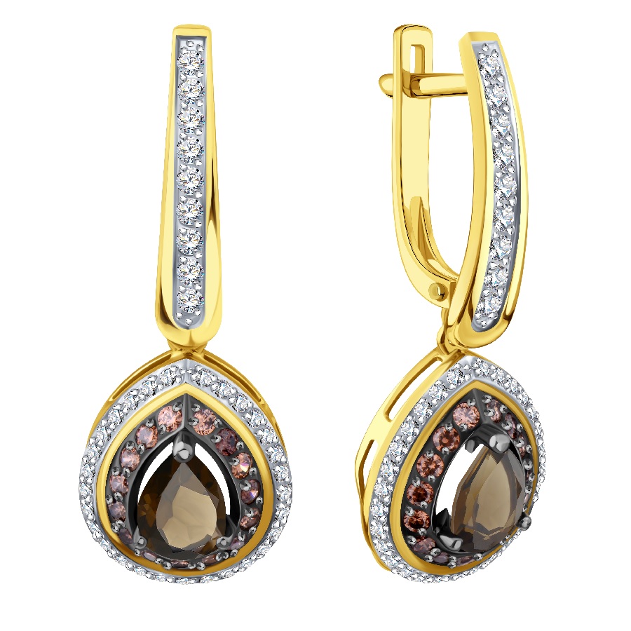 Серьги с раухтопазами и фианитами (арт. Т94702Г987)