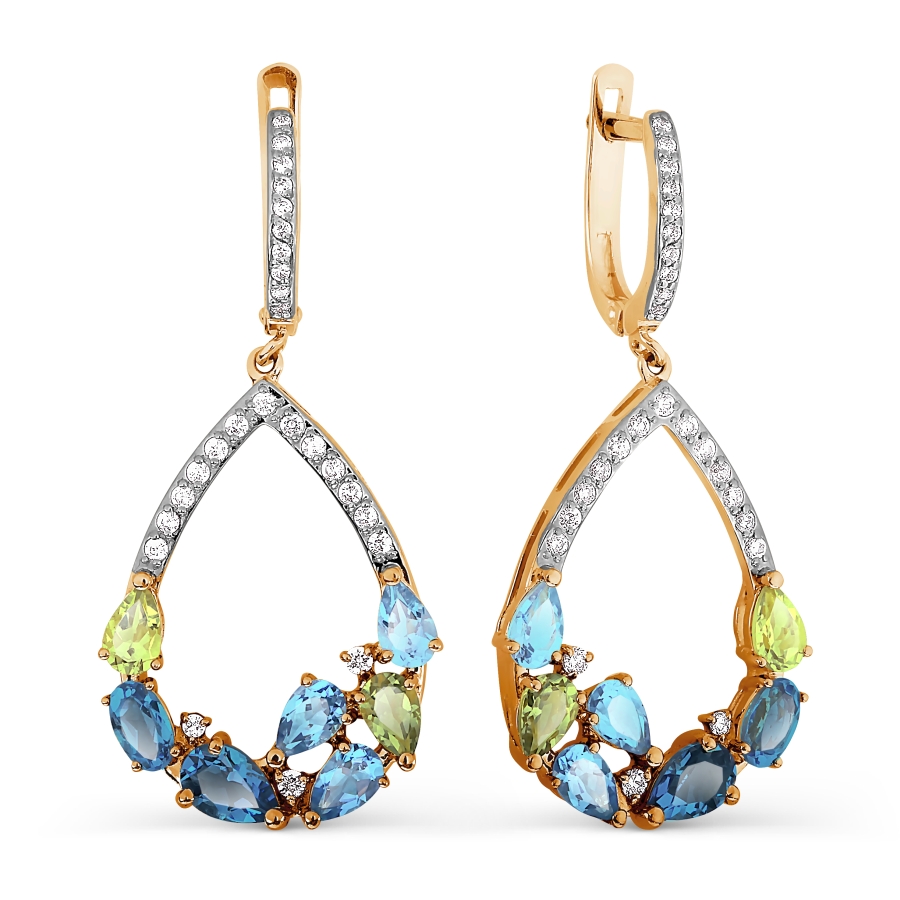 Серьги с топазами, хризолитами и фианитами (арт. Т147026827-02)