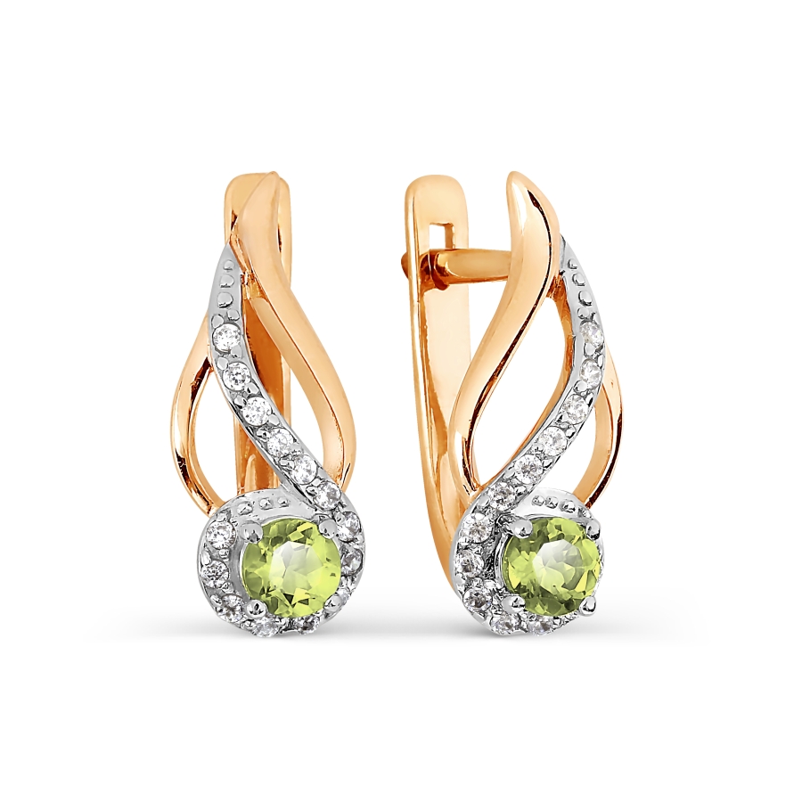 СЕРЬГИ С ХРИЗОЛИТАМИ И ФИАНИТАМИ