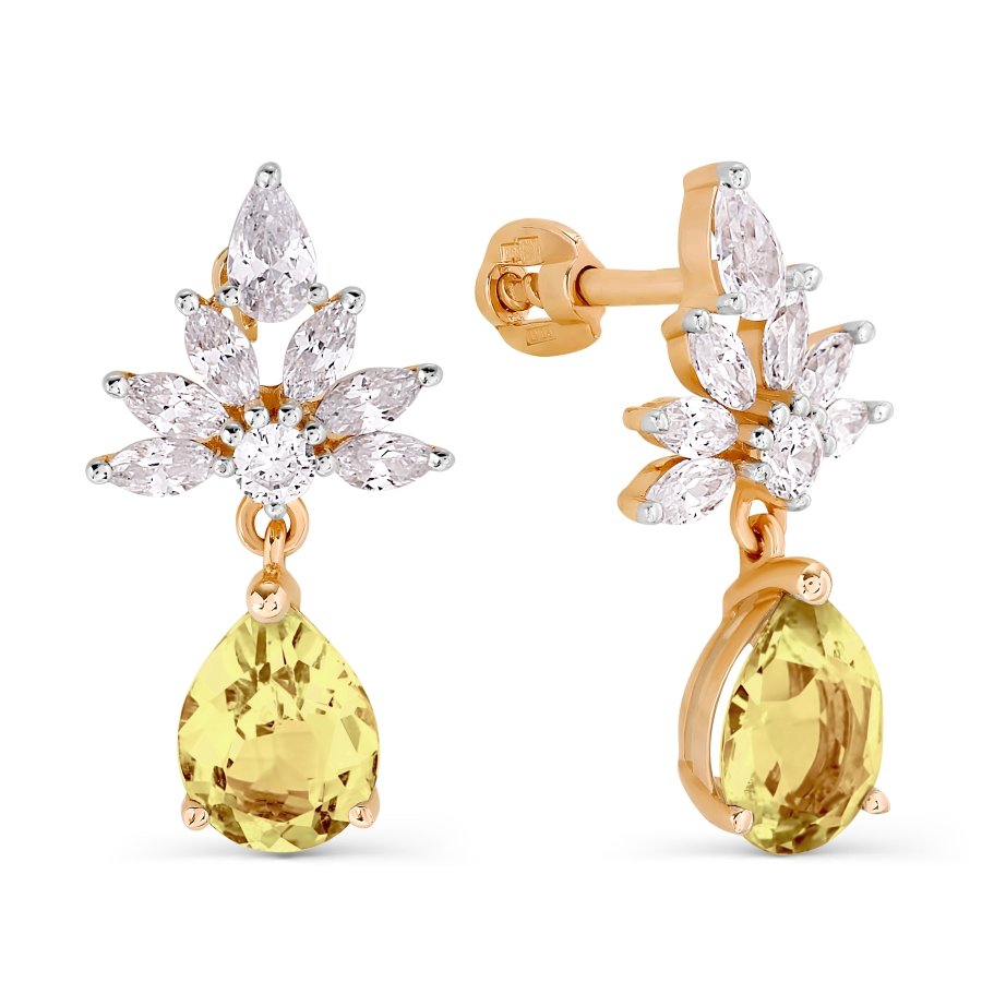 СЕРЬГИ С ЦИТРИНАМИ И ФИАНИТАМИ