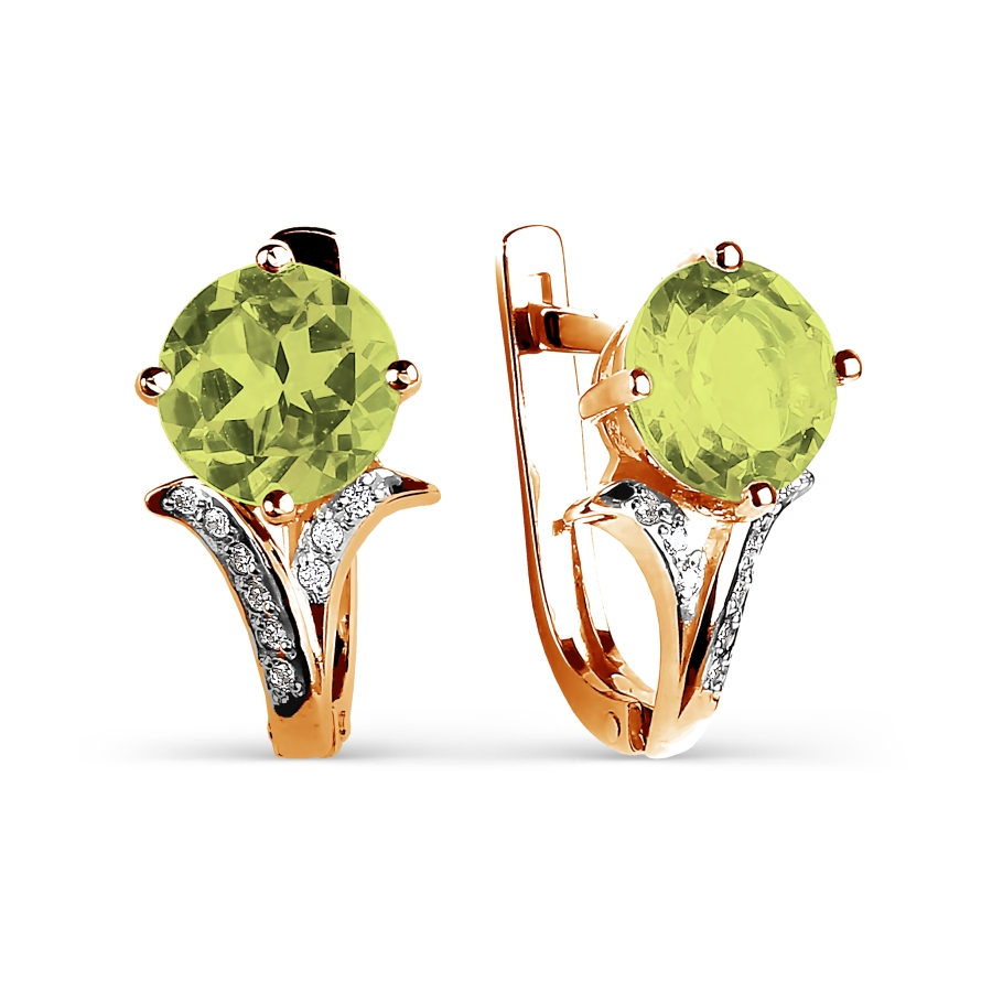 Серьги с хризолитами и бриллиантами (арт. Т141025408)