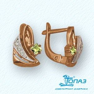 Серьги с хризолитами и бриллиантами (арт. Т13102191)