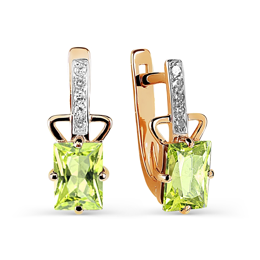 Серьги с хризолитами и бриллиантами (арт. Т141026131)