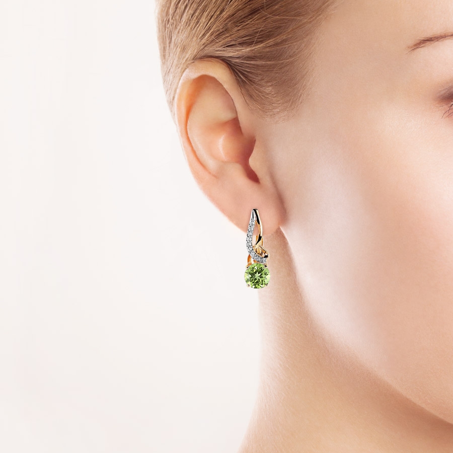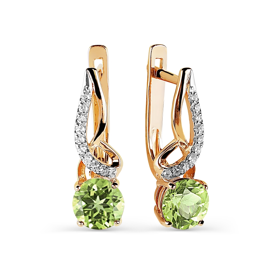 СЕРЬГИ С ХРИЗОЛИТАМИ И БРИЛЛИАНТАМИ
