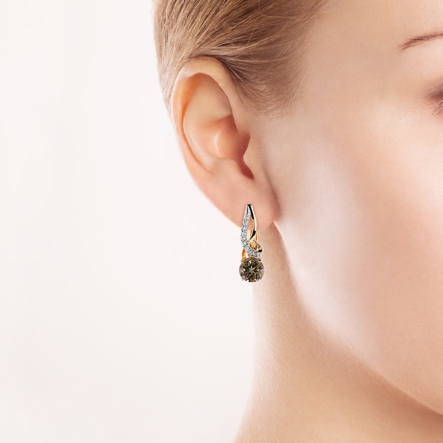 Серьги с раухтопазами и бриллиантами (арт. Т141026127)